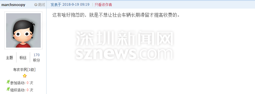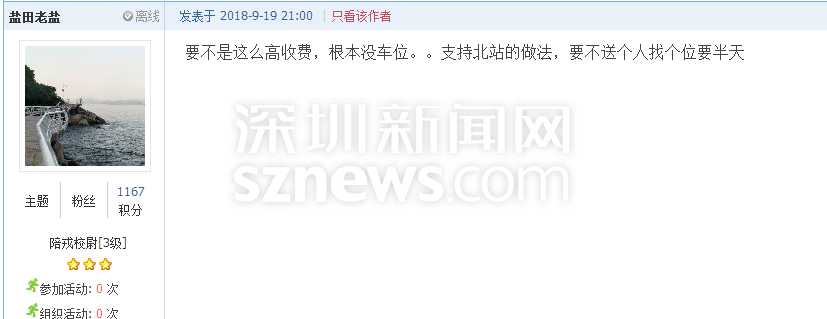 深圳新聞網(wǎng)9月21日訊(記者 施冰冰)“北站停車三天收費412元,這不是暴利嘛?!”近日,深圳一網(wǎng)友發(fā)帖吐槽深圳北站的收費標(biāo)準(zhǔn),他認為深圳市中心的商業(yè)寫字樓一天封頂也不過60元,高鐵站社會停車場作為老百姓的公共交通基礎(chǔ)設(shè)施,憑什么比市中心的商業(yè)寫字樓還貴2倍多?(帖文:《 北站社會停車場作為老白姓的公共交通基礎(chǔ)設(shè)施,憑什么比市中心的商業(yè)寫字樓還貴2倍多》)