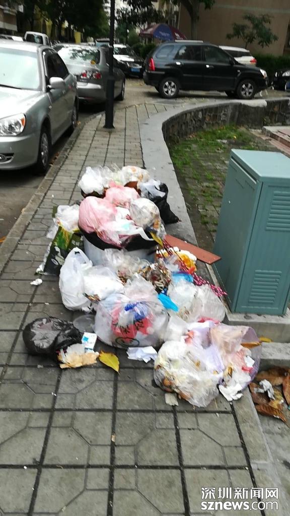 同時,小區(qū)整體配備保潔人員數(shù)量偏少,每個人要負責的保潔區(qū)域面積過大,所以經常是居民樓道幾天打掃一次,十天半月才拖一回地。小區(qū)居民樓、公共區(qū)域垃圾隨處可見;垃圾袋、垃圾桶污穢不堪,而且由于搜集的垃圾清運不及時,往往污液橫流,臭氣熏天。