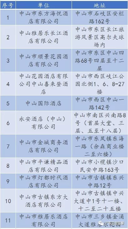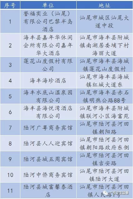 廣東省A級住宿單位名單