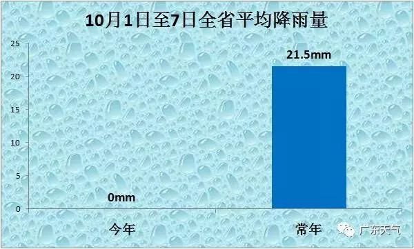 10月1日到7日,全省平均雨量:今年0mm,常年21.5mm,1951年以來(lái)最少。