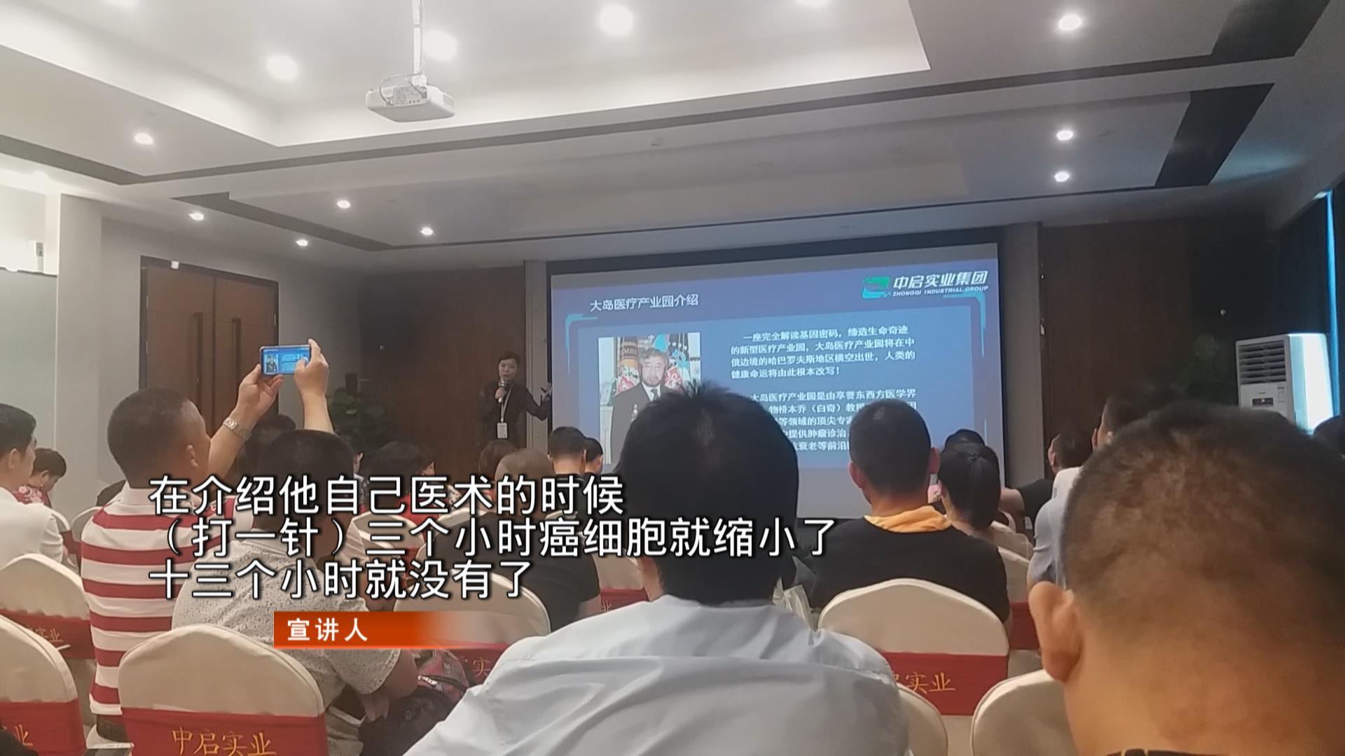 宣講人推廣的重磅項(xiàng)目是,企業(yè)跟一位姓白的教授合作的大島醫(yī)療產(chǎn)業(yè)園。她表示這位白教授因?yàn)闅v史原因失去了國籍,只能滯留在中俄邊界,因此大島醫(yī)療產(chǎn)業(yè)園也只能設(shè)在中俄邊界。