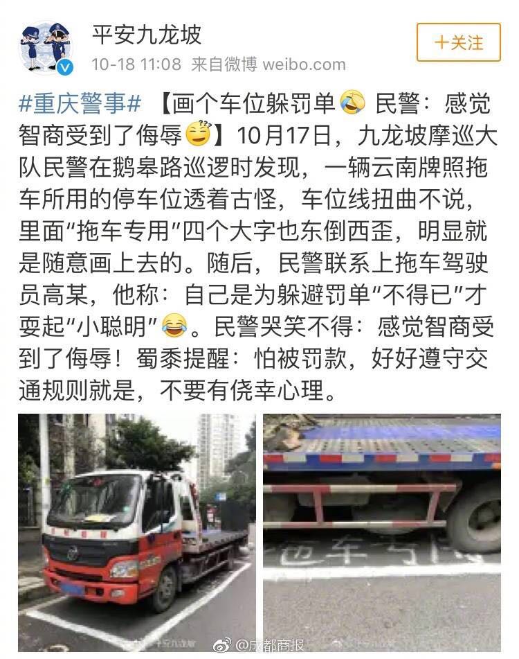 一貨車司機(jī)為躲避罰單,自己畫了個車位