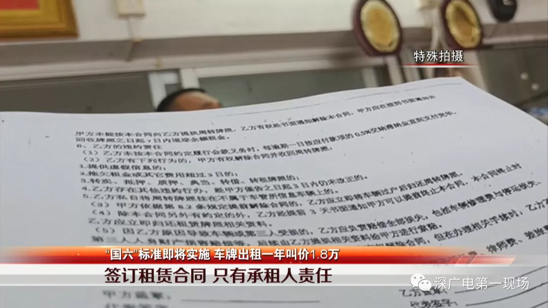 車牌、指標(biāo)的錯(cuò)位市場(chǎng),衍生了車牌出租的利益。二手車行在這過程中處于主導(dǎo)的地位,他們規(guī)定在車牌租用之前,承租人需要簽訂一份租賃合同,按理說合同應(yīng)該劃分雙方的責(zé)任,然而記者發(fā)現(xiàn),合同明確指出了租牌者違約應(yīng)當(dāng)承擔(dān)的責(zé)任,條款多達(dá)10多項(xiàng)。