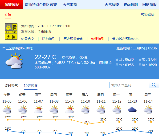 5日,深圳將以多云天氣為主,部分時(shí)間可見陽光。白天氣溫回升,最高氣溫在27度左右。早晚天氣清涼,最低氣溫在22度左右,溫差增大,市民應(yīng)注意預(yù)防疾病。