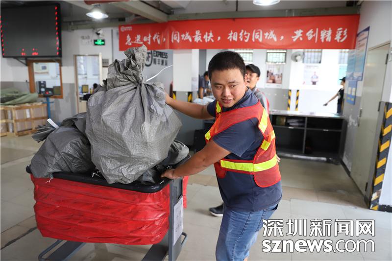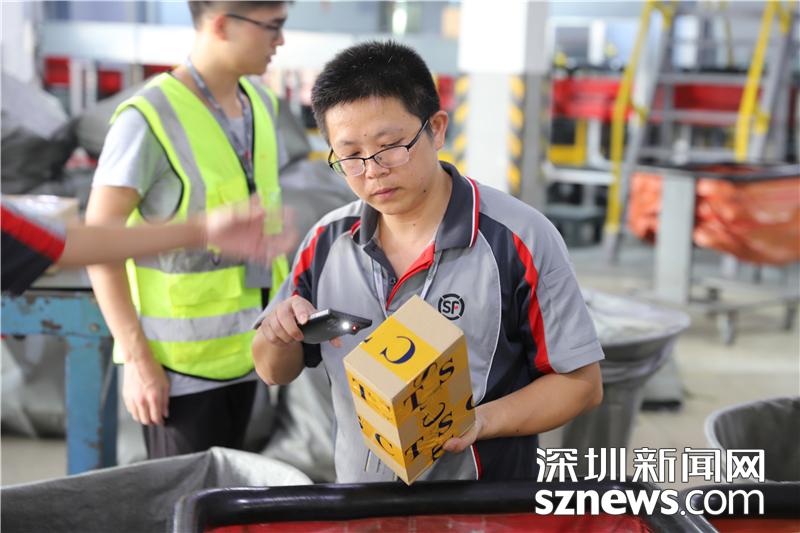 忙碌的田貝營(yíng)運(yùn)部?jī)?nèi),順豐員工正在搬運(yùn)包裹