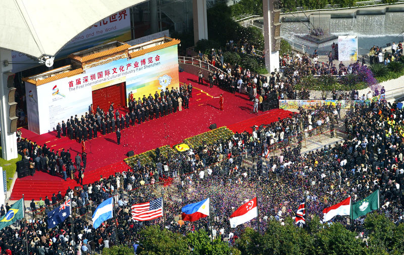 2004年,首屆深圳國(guó)際文化產(chǎn)業(yè)博覽會(huì)開(kāi)幕式現(xiàn)場(chǎng)。丁慶林 攝