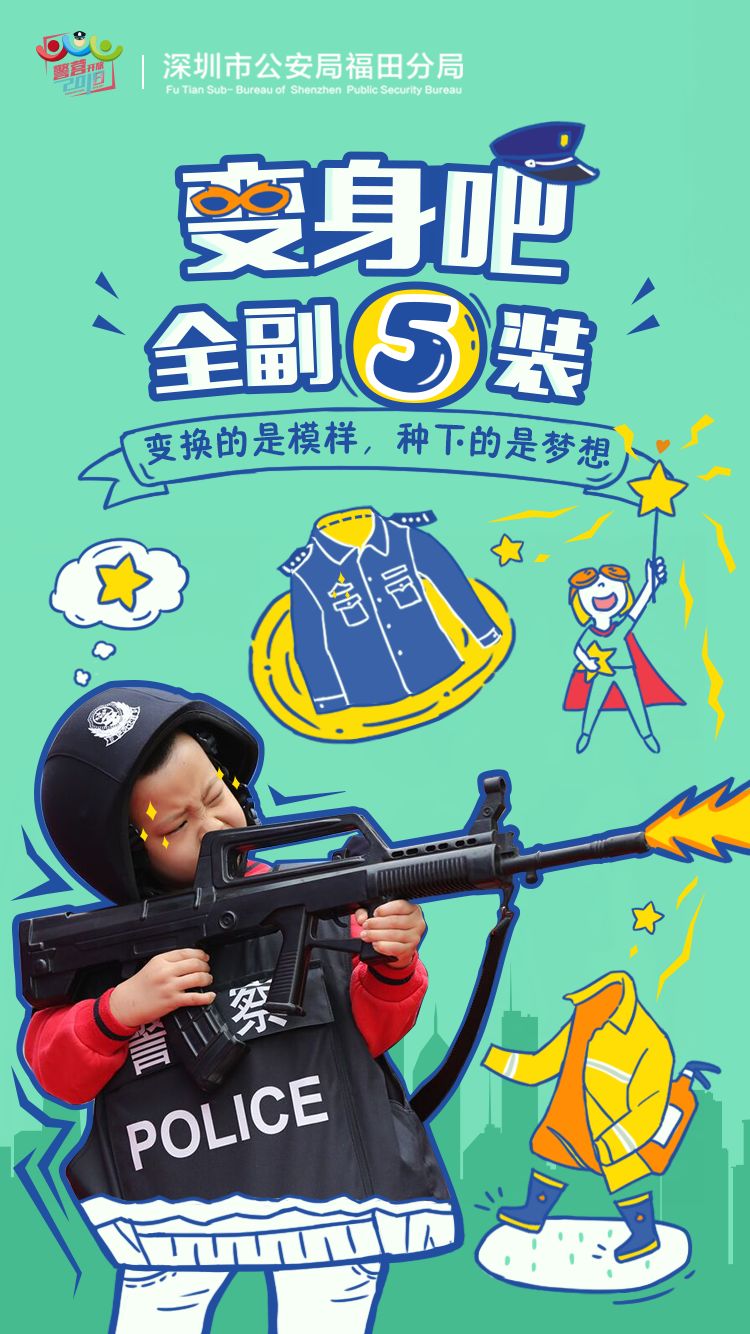 福田警方從11月26日開始,連續(xù)推出開放日倒計時5期主題海報:“變身吧,全副‘5’裝”、“趣玩吧,‘四’意嬉戲”、“學習吧,舉一反‘3’”、“見面吧,為你‘2’來”、“一起吧,‘1’起警彩”,向市民發(fā)出邀請函,通過官方微信、微博等新媒體平臺發(fā)布,搶先看精彩。