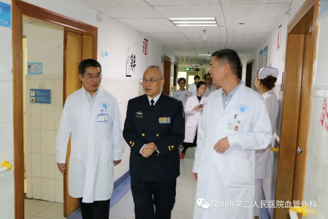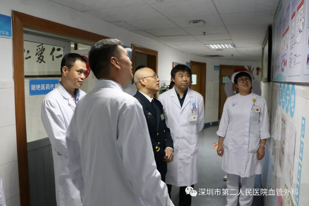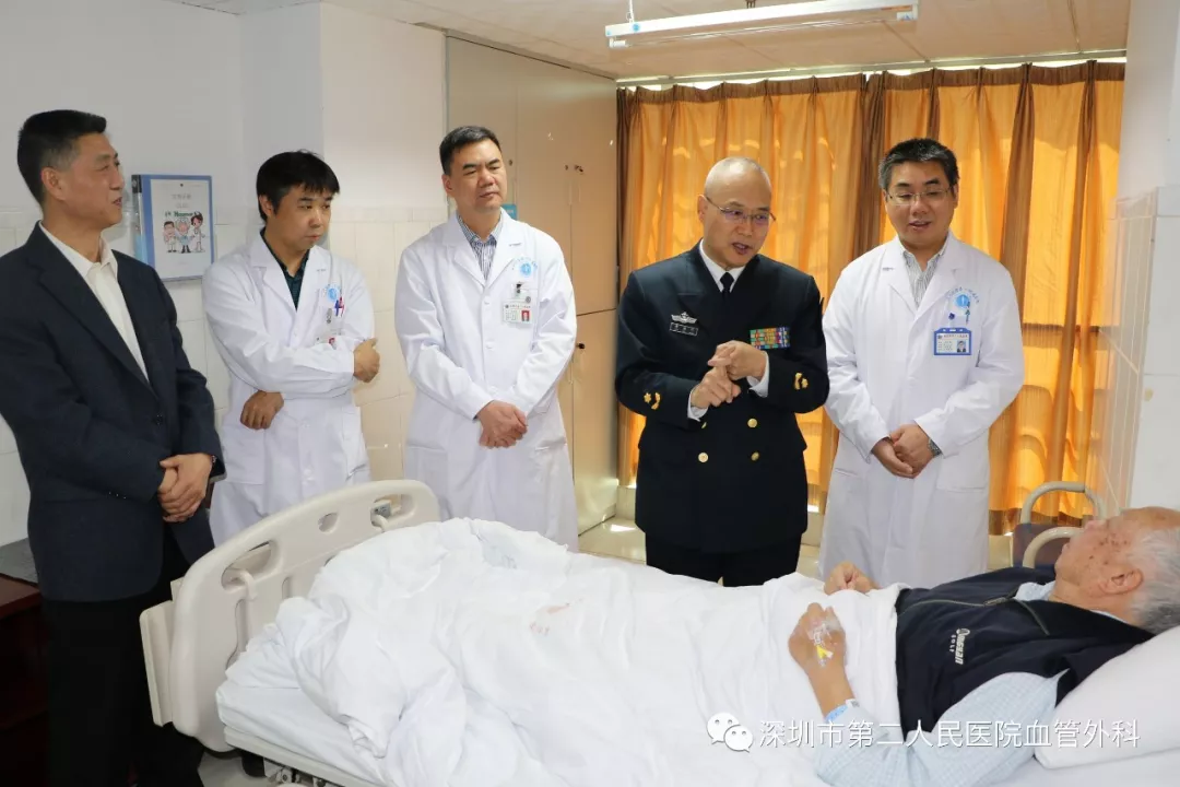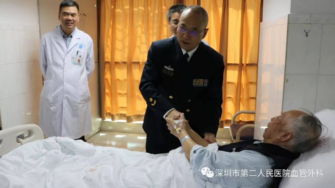 座談會結束后,景在平教授、趙永勝副院長與科室醫(yī)護人員一起,進行了床邊臨床教學查房,同時為一位腹主動脈瘤疾病患者會診?;颊呤强姑涝嫌⑿郏ㄏ硎苘娂壌觯?,因發(fā)現(xiàn)腹主動脈瘤(俗稱“不定時炸彈”)后,一直深受該疾病困擾,一度不愿意接受治療。經(jīng)過景在平教授詳細講解后豁然開朗,同意接受治療,并要求在景在平教授團隊及朱國獻主任團隊下進行手術治療。會診結束時,老先生緊緊握住景在平教授的手,萬分感激。