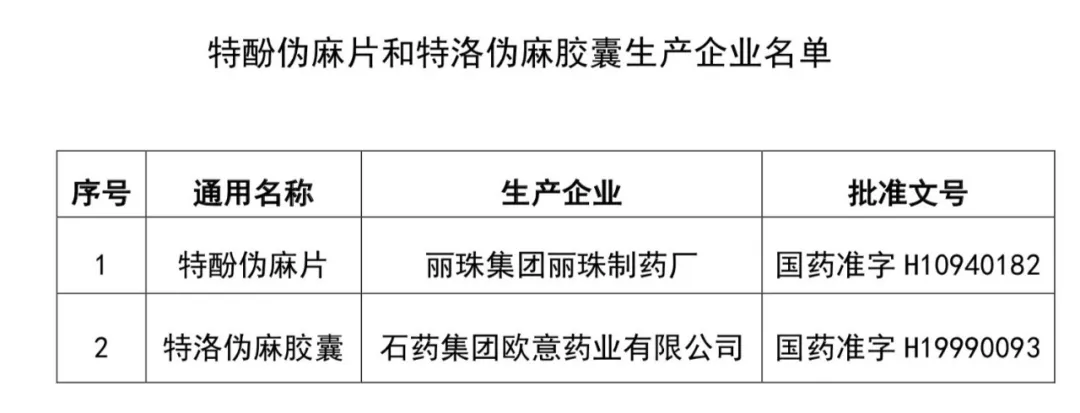 國家藥監(jiān)局要求,已上市銷售的特酚偽麻片和特洛偽麻膠囊由生產企業(yè)負責召回,召回工作應于2018年12月31日前完成,召回產品由企業(yè)所在地藥品監(jiān)督管理部門監(jiān)督銷毀。
