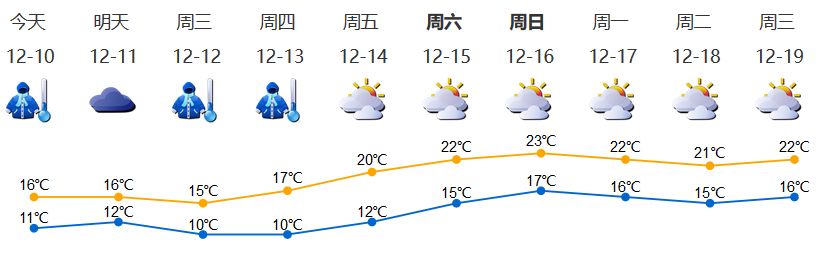 我市今天今天陰天間多云,有零星小雨;氣溫11-16℃,北部及山地再低1℃左右;北風(fēng)3級,陣風(fēng)6級;相對濕度75%-95%。