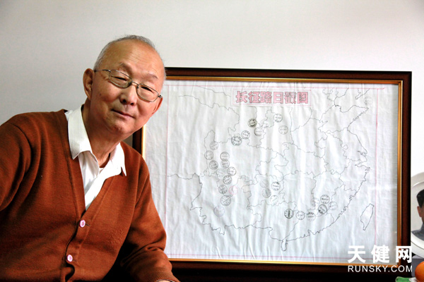 安邦才和老伴曾跨越10個省份重走長征路,留下了一份珍貴《長征路日戳圖》。