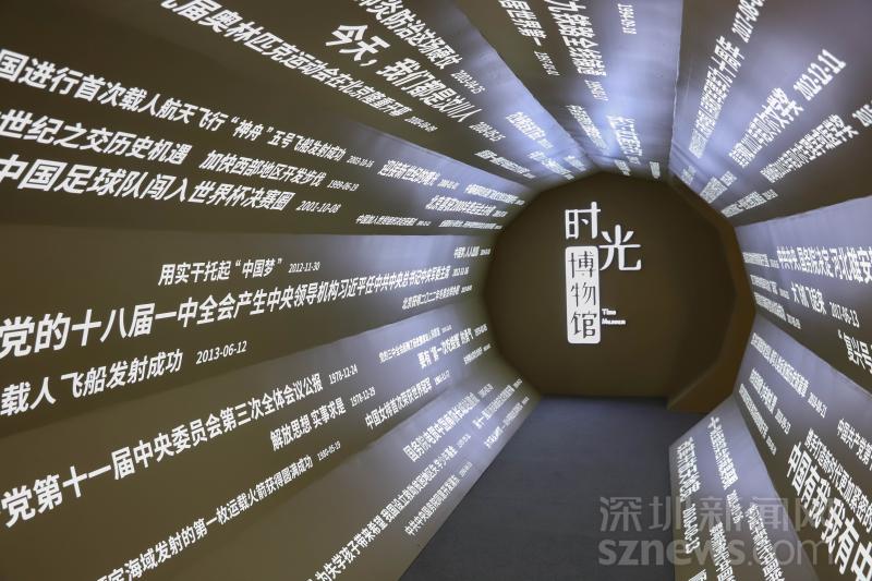 進(jìn)入時(shí)光博物館,最先通過的是由40年來《人民日?qǐng)?bào)》各個(gè)時(shí)期重點(diǎn)新聞報(bào)道的標(biāo)題聚合而成的時(shí)光隧道