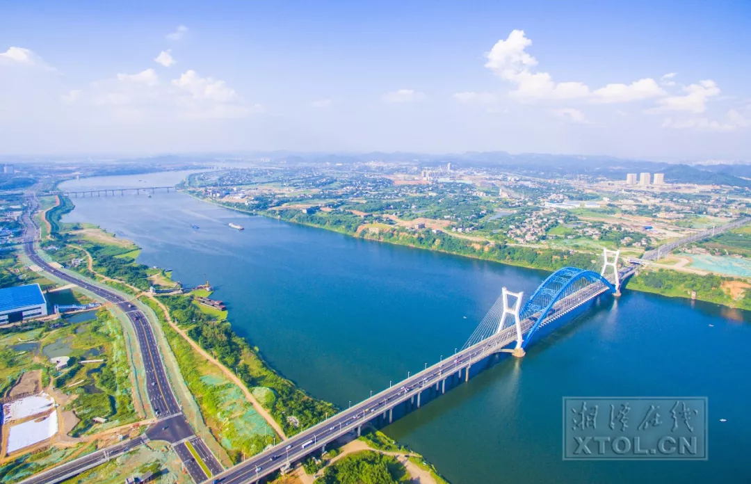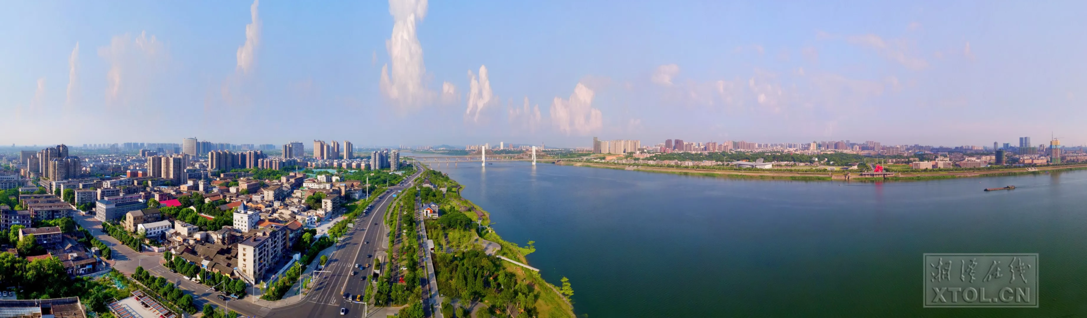藍天白天映襯下的湘江湘潭段,江水清澈。(記者 方陽 攝)