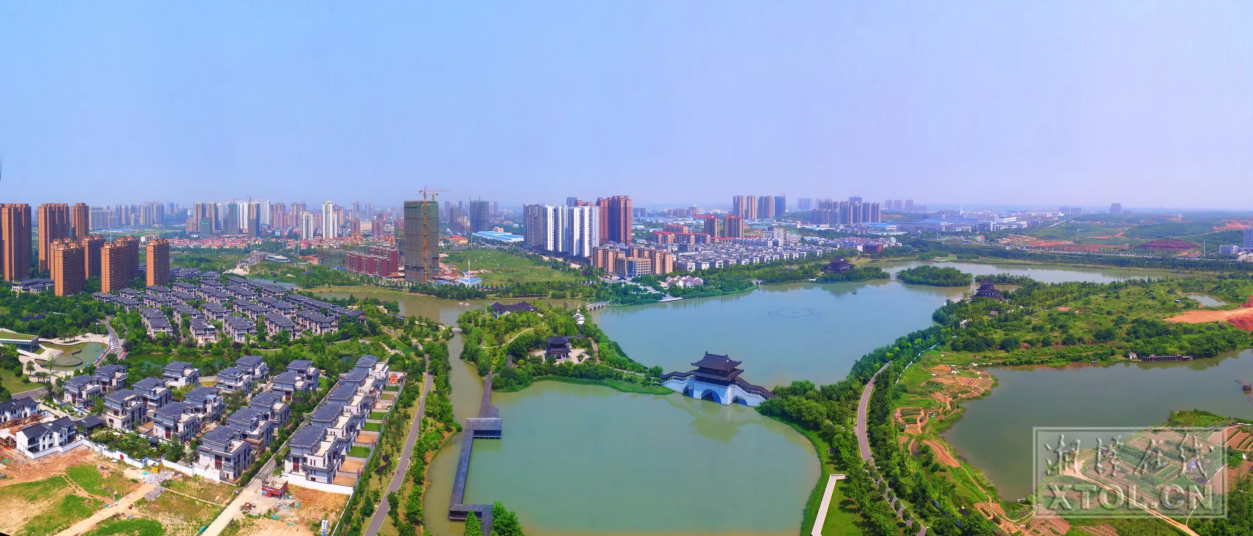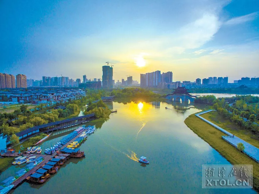 氣勢恢宏的萬樓景區(qū)與湘江碧水藍天交相輝映,構成一幅美麗的畫卷。(記者 方陽 攝)