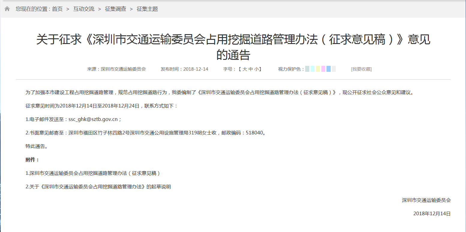 好在,最近《深圳市交通運(yùn)輸委員會(huì)占用挖掘道路管理辦法(征求意見稿)》