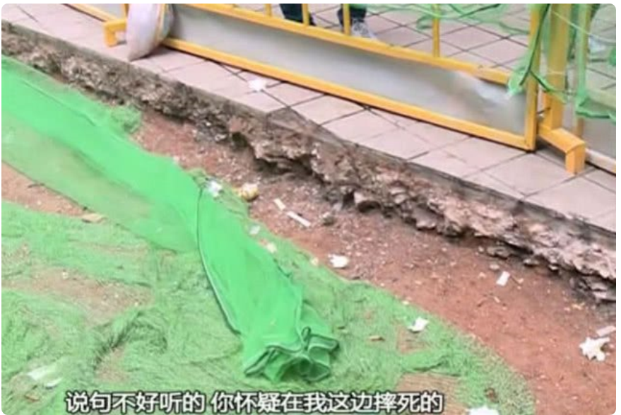 監(jiān)控視頻可見,當(dāng)時(shí)地面開挖的位置確實(shí)沒有完全圍蔽起來,護(hù)欄前亦未見警示語。