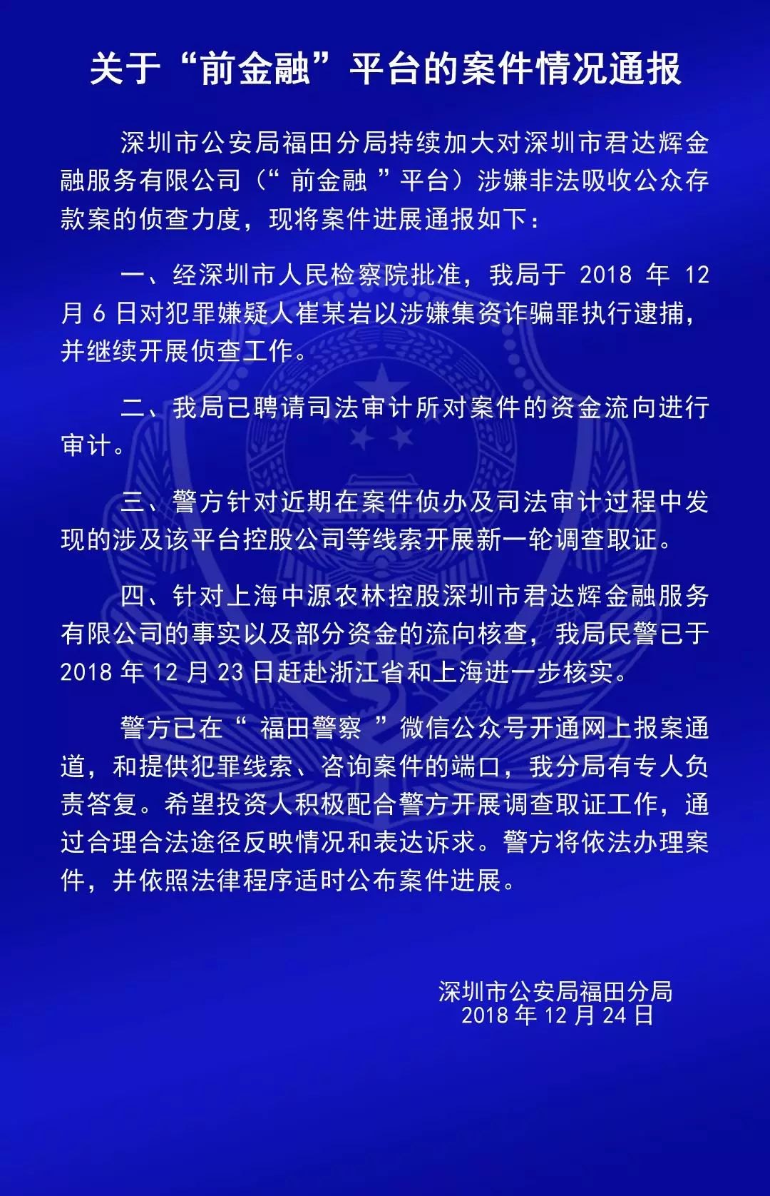 關于“合拍在線”“壹佰金融”“五星財富”“眾車在線”“財富中國”“小零錢”“錢爸爸”“合時代”和“前金融”平臺的案情通報