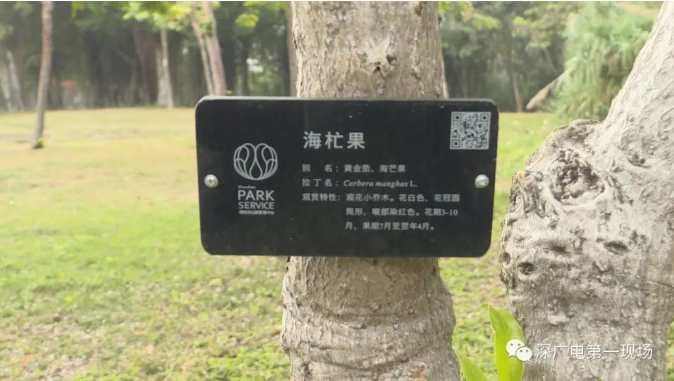 記者在園林管理中心了解到,海杧果,又名黃金茄、牛心荔,夾竹桃科,因其果實似芒果而得名。其樹為常綠小喬木,海芒果花多美麗而芬芳,因此被選作公園的觀賞性植物,樹冠美觀又喜歡生長在海邊。