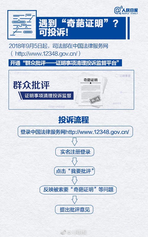 遇到這樣的"奇葩證明"可在司法部開(kāi)通的網(wǎng)上投訴平臺(tái)上進(jìn)行投訴,實(shí)名登錄后即可反映意見(jiàn),各地方被要求在15天內(nèi)反饋。