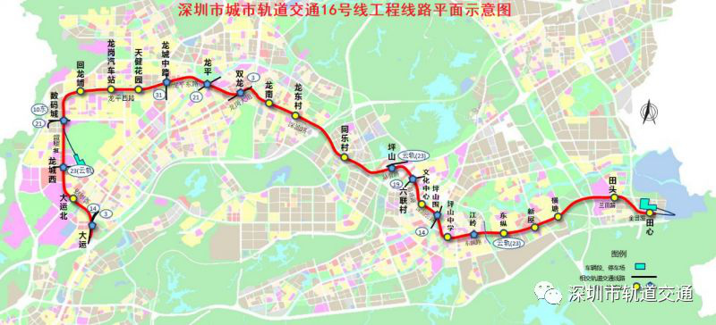 16號線起于龍崗大運站,終于坪山田心站,串聯(lián)龍崗大運中心、坪山高鐵站、坪山中心及田心地區(qū),其中大運站途經(jīng)園山轄區(qū),同時該線南端預(yù)留大康、安良等站,是東部組團內(nèi)部普速線路。該線路的建設(shè)將加強龍崗、坪山中心區(qū)的軌道服務(wù),增加?xùn)|部組團內(nèi)部軌道覆蓋,促進沿線城市化發(fā)展。