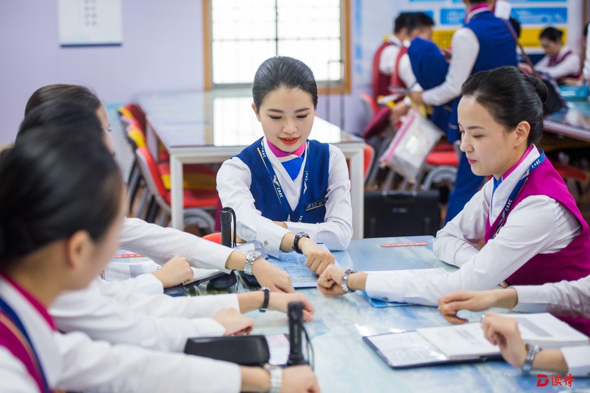 乘務(wù)員們?cè)谶M(jìn)行航前準(zhǔn)備。