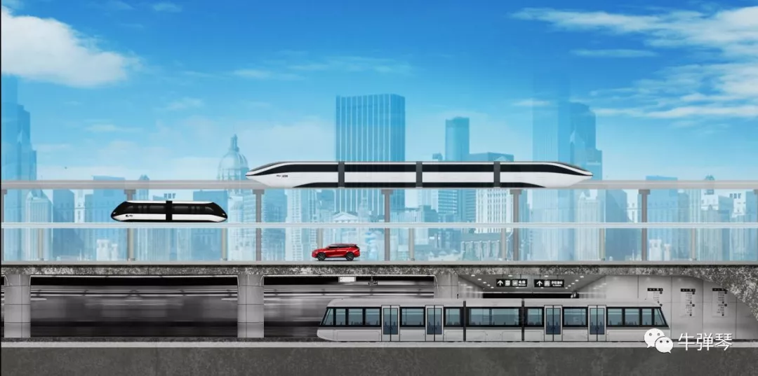 由空中比亞迪云軌云巴、地面汽車和地鐵構筑的城市立體交通