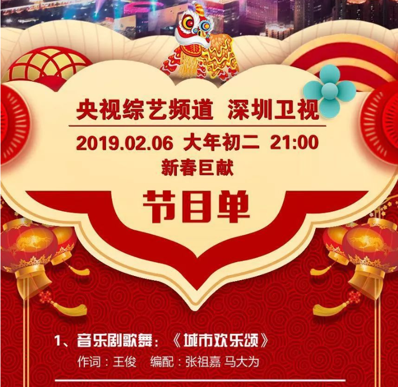 “擁抱春天——2019中央廣播電視總臺(tái)春節(jié)聯(lián)歡晚會(huì)深圳分會(huì)場(chǎng)節(jié)目展播暨深圳春節(jié)聯(lián)歡晚會(huì)”(以下簡(jiǎn)稱“深圳春晚”)將于明晚21:00在央視綜藝頻道和深圳衛(wèi)視同步播出。