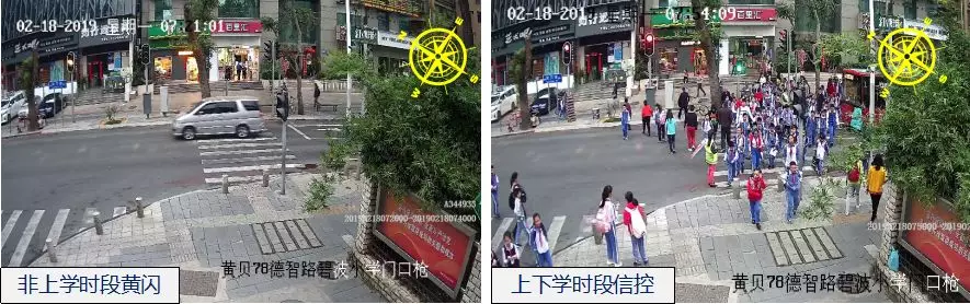 為了保障學(xué)生安全過(guò)街,深圳交警恢復(fù)黃貝/德智路口上下學(xué)時(shí)段信號(hào)燈管控模式,非上下學(xué)時(shí)段啟用黃閃控制模式。