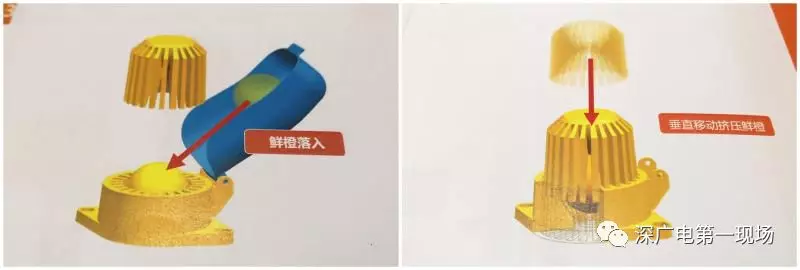 在監(jiān)管人員的要求下,上海巨昂的技術人員打開了一臺“天使之橙”現(xiàn)榨橙汁機,取出了兩個碗狀、類似爪子的金屬部件。
