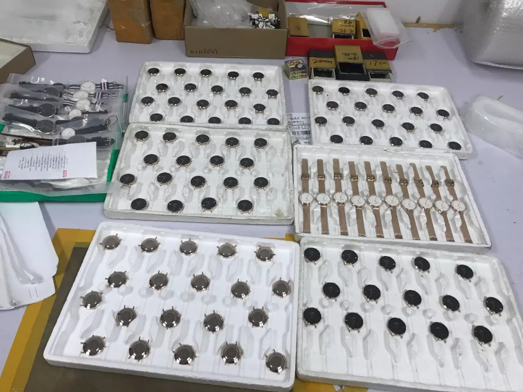 2018年6月21日,深圳市公安局經(jīng)偵支隊(duì)聯(lián)合市市場監(jiān)管部門開展打擊假冒DW品牌手表、FOREO等品牌潔面儀收網(wǎng)行動(dòng),共出動(dòng)警力110人,查處窩點(diǎn)13個(gè),刑拘犯罪嫌疑人12人?,F(xiàn)場查扣假冒DW品牌手表13500塊,表帶、表殼、后蓋等配件43000個(gè)以及包裝盒、標(biāo)簽12000余個(gè),現(xiàn)場查扣假冒產(chǎn)品價(jià)值1200萬元人民幣,總涉案金額3000余萬元人民幣。查扣假冒各品牌美容產(chǎn)品、半成品和商標(biāo)標(biāo)識(shí)11798件,查扣假冒產(chǎn)品價(jià)值人民幣500萬元。經(jīng)查,上述犯罪團(tuán)伙在未經(jīng)注冊商標(biāo)所有人許可的情況下,擅自使用注冊的商標(biāo)圖案組裝、翻新假冒DW品牌手表、FOREO品牌潔面儀。經(jīng)商標(biāo)權(quán)利人鑒定,現(xiàn)場查獲的手表和美容儀為假冒其注冊商標(biāo)的產(chǎn)品。