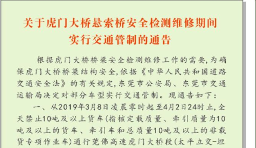 注意!今起虎門大橋限行核定載10噸 ...