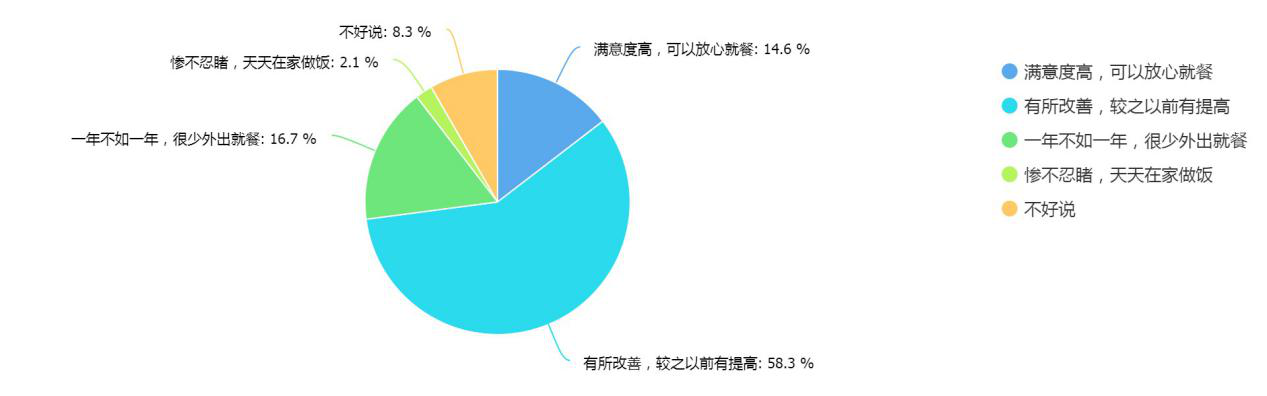 對于深圳白領(lǐng)非常關(guān)心的餐飲店面,接近6成受訪者認(rèn)為比之前有所改善,14.6%受訪者認(rèn)為可以放心就餐。