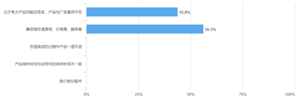 用戶最關(guān)心的問題,售后維修依然是重災(zāi)區(qū),56.3%的網(wǎng)上消費(fèi)者更關(guān)心售后維修問題,維修速度慢、價(jià)格高、服務(wù)差是網(wǎng)上消費(fèi)者對數(shù)碼家電售后領(lǐng)域普遍的認(rèn)知。