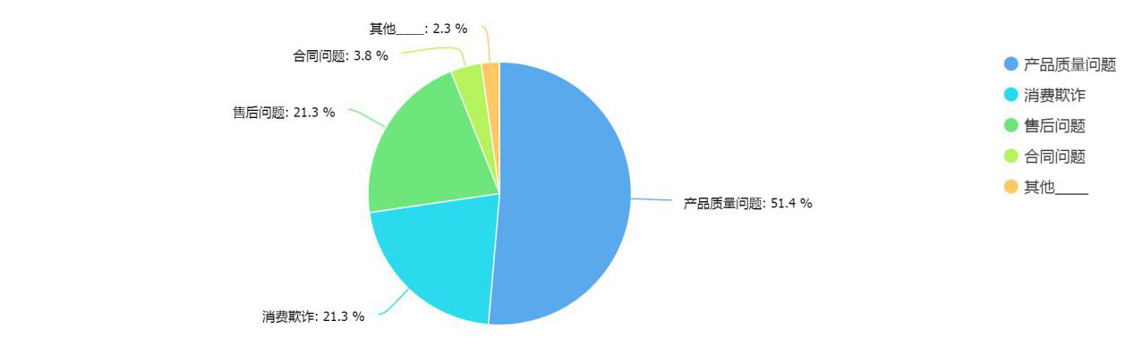 經(jīng)過統(tǒng)計(jì),51.4%的受者普遍反映遇到的消費(fèi)侵權(quán)問題是產(chǎn)品質(zhì)量問題,其次,消費(fèi)欺詐和售后問題也是消費(fèi)者最關(guān)注的問題之一。