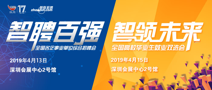 四月的深圳將迎來(lái)一波大春招,第十七屆中國(guó)國(guó)際人才交流大會(huì)將于4月14日 -15日在深圳會(huì)展中心開(kāi)幕。作為大會(huì)重要組成部分,由智聯(lián)招聘執(zhí)行的2019年“智聘百?gòu)?qiáng)”全國(guó)名企事業(yè)單位綜合招聘會(huì),及“智領(lǐng)未來(lái)”全國(guó)高校畢業(yè)生就業(yè)雙選會(huì),將分別于4月13日、4月15日在深圳會(huì)展中心2號(hào)館舉辦。