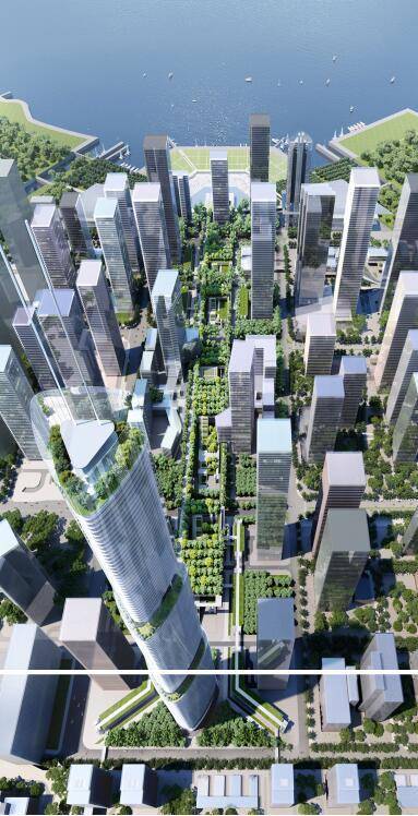天空花園豐富的文化活動形成全年活動的自然焦點(diǎn),在水邊的公共空間終止,被稱為“表演公園”。該區(qū)域?qū)粋€歌劇院和會議中心,并直接面對前海灣。在東面有一座塔頂,形成了獨(dú)特的地標(biāo)。