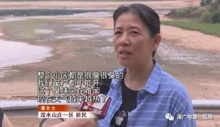 記者也跟隨瀅水山莊一區(qū)居民來(lái)到小區(qū)靠近民治水庫(kù)的一側(cè),可以明顯聞到有一股腥臭從民治水庫(kù)方面飄來(lái),并且,民治水庫(kù)里面的水也基本上被抽干,遠(yuǎn)處的大壩上,有不少工人正在施工。小區(qū)居民告訴記者,正對(duì)著水庫(kù)的幾十戶居民受影響更加嚴(yán)重。