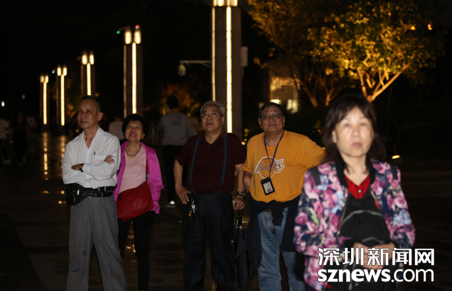 現(xiàn)場觀看燈光秀的市民