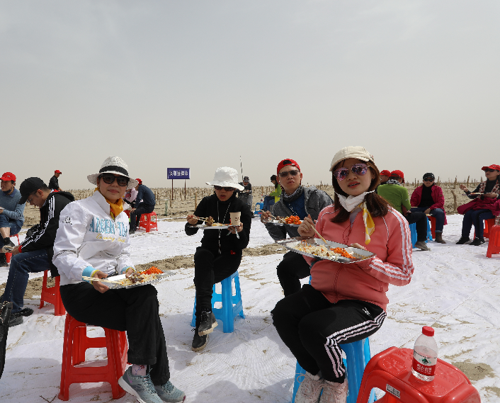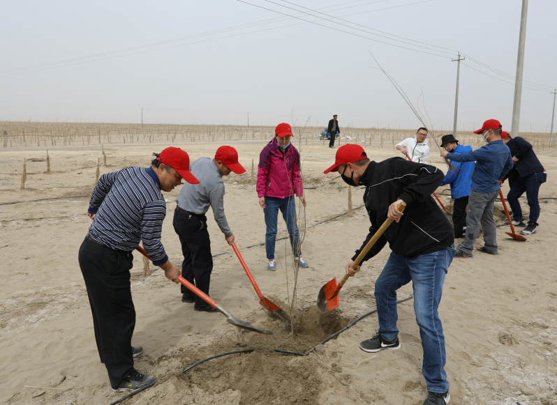 共120余人在麥蓋提縣百萬畝防風(fēng)固沙林基地