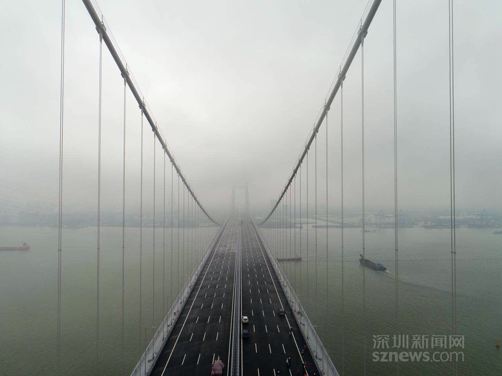 4月1日,微風(fēng)細(xì)雨中的虎門二橋(現(xiàn)名為“南沙大橋”)