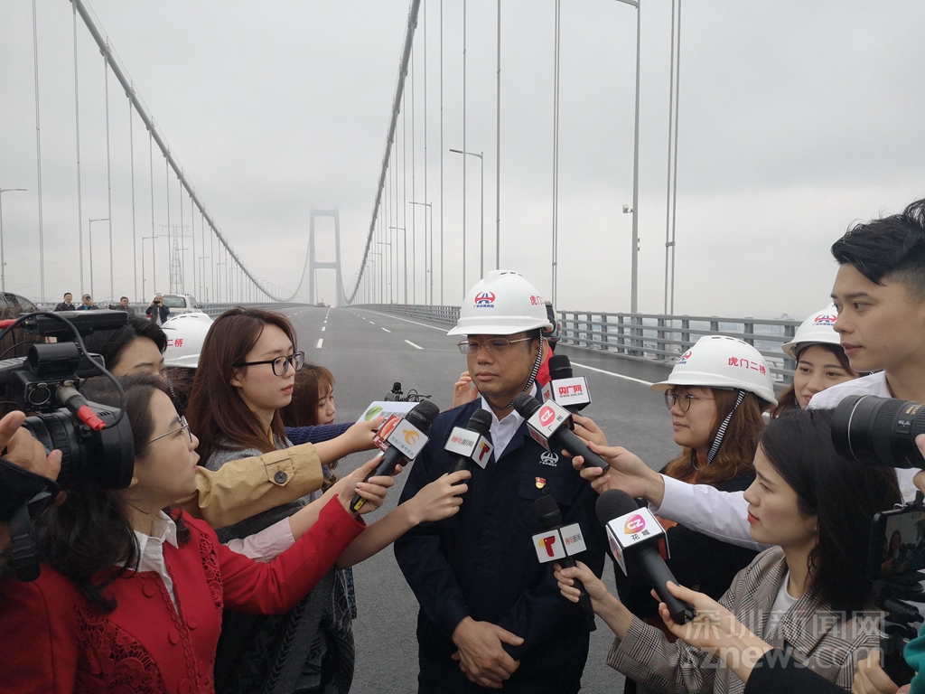虎門二橋項(xiàng)目營(yíng)運(yùn)負(fù)責(zé)人高嚴(yán)廣(中)介紹虎門營(yíng)運(yùn)情況