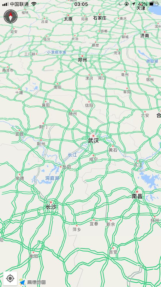 再隨便來(lái)看凌晨3點(diǎn)05分的幾個(gè)城市,重慶、武漢、長(zhǎng)沙、南昌等,周邊路況顯示良好。