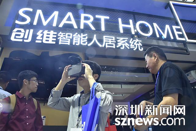 創(chuàng)維智能人居系統(tǒng)攤位前,一位市民正在體驗