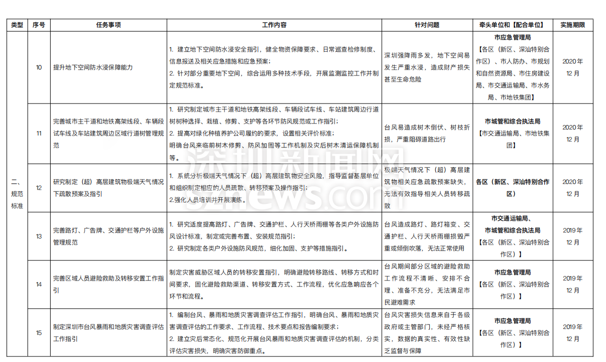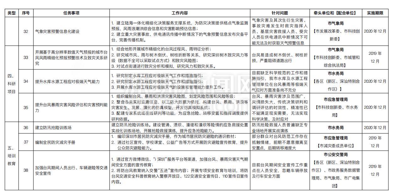 附:《深圳市提升臺(tái)風(fēng)暴雨災(zāi)害防御能力重點(diǎn)任務(wù)實(shí)施方案一覽表》