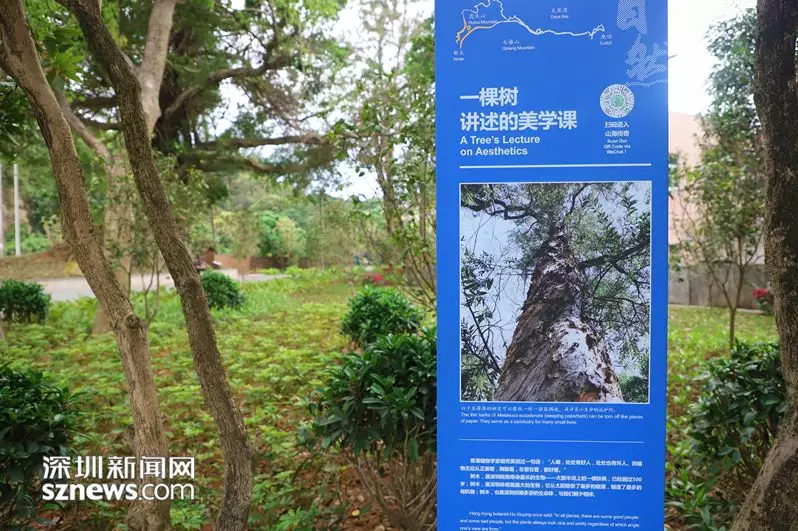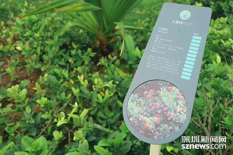 隨著綠道行進的深入,記者來到第一個自然觀察研習點,這里配置有自然研習導賞標識牌,牌上有植物動物的照片及介紹,牌子的角落有供游客學習的二維碼。記者了解到,新區(qū)同時開發(fā)建立一套APP自然課堂學習系統(tǒng),在綠道全程配套建設64個實地自然觀察研習點,設置了260余個自然研習導賞標識,接入專業(yè)智能識別軟件,配以體量龐大生物影像數(shù)據(jù)庫。掃碼進入APP就可以通過文字、圖片和音像資料了解到“大鹿線”全景介紹和分區(qū)介紹,以及物種相關知識。同時,該系統(tǒng)利用手機GPS定位技術,為行進中的市民游客自動講解所到之處的自然課堂語音課程。來自羅湖的資深驢友李先生告訴記者,來“大鹿線”徒步,不僅鍛煉身體愉悅心情,還可以學到豐富的自然知識,打開APP行走全程,猶如參觀了一座多維一體的山?!叭安┪镳^”。