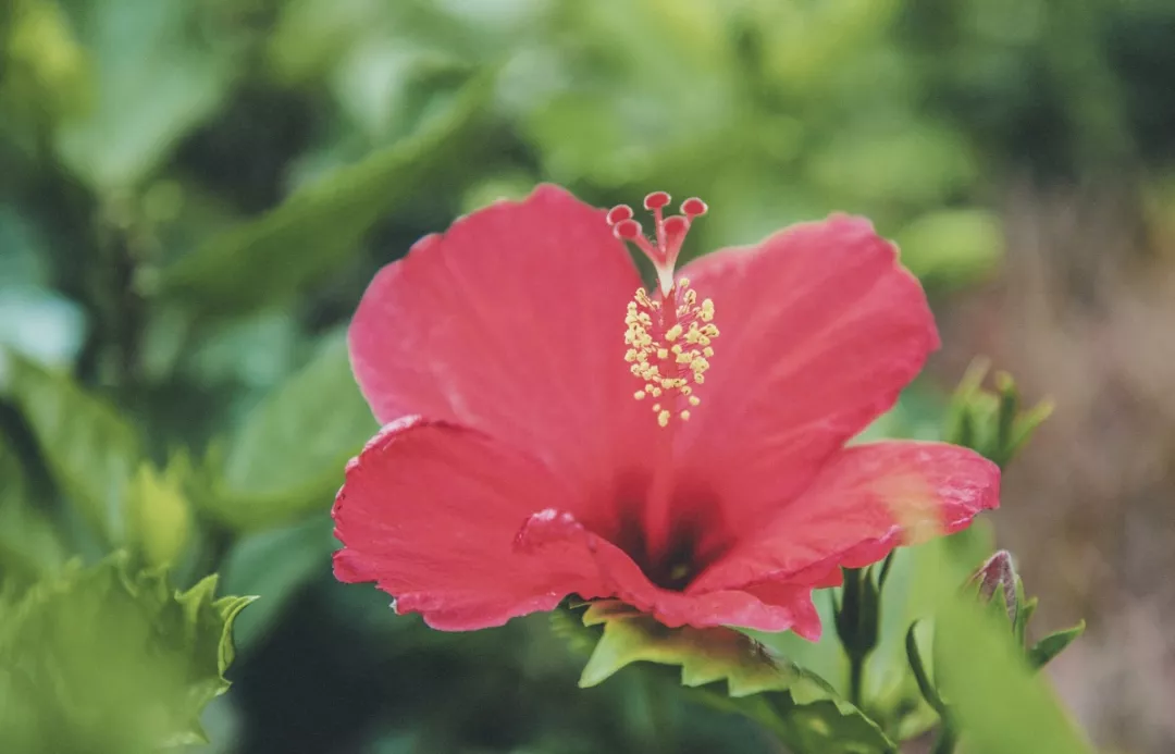 除了觀賞,朱槿的花蜜還可食用,初開(kāi)的朱槿,去掉底部的花萼,便可以吮吸到甜甜的花蜜。記得小時(shí)候也曾嘗過(guò),甜蜜的滋味還留在記憶里。