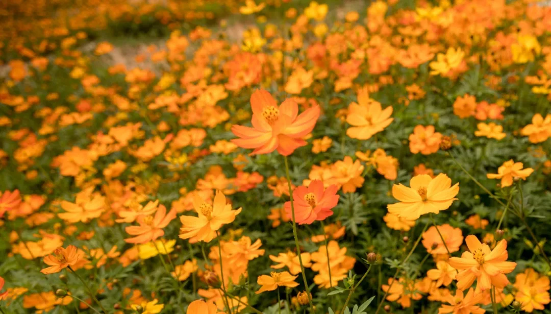 幾十上百朵小花爭(zhēng)相聚集,宛如一個(gè)半球形的紅橙色團(tuán)子,植被高低錯(cuò)落,說(shuō)一句花團(tuán)錦簇,倒也貼切。