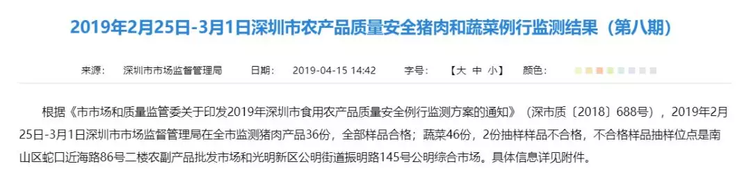 “2019食用農產品抽檢第八期”