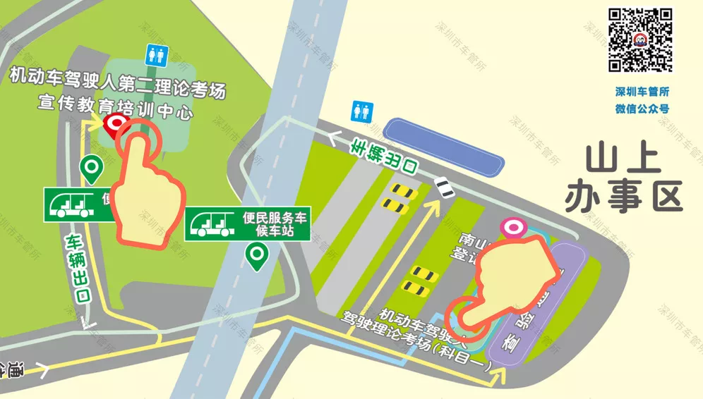 深圳市南山區(qū)龍珠三路原西麗車(chē)管所山頂(原九選三科目二考場(chǎng))(5月3日起,增加夜考場(chǎng)次)。