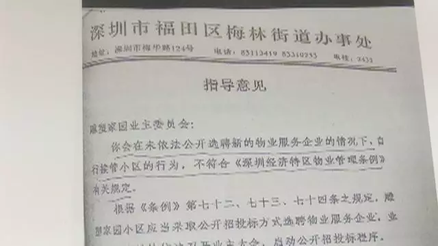 內(nèi)容顯示:業(yè)委會在未公開選聘新物業(yè)公司的情況下,自行接管小區(qū)的行為,不符合相關(guān)法規(guī)規(guī)定??芍煜壬f,這份文件的真實(shí)性有待核實(shí)。而發(fā)出這份文件的業(yè)主卻堅(jiān)稱,文件的照片是當(dāng)年在街道辦辦公室拍的,不可能有假。